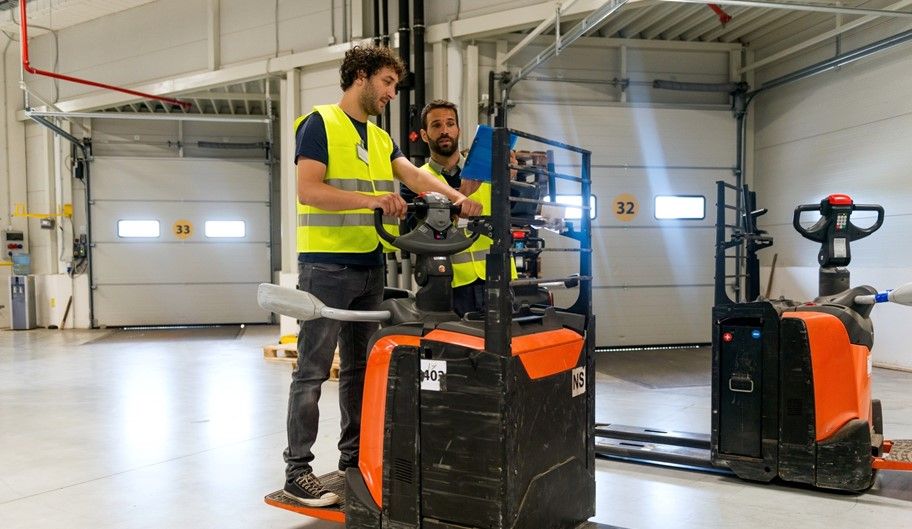 Praca jako order picker przy kompletowaniu zamówien produktów spozywczych i przygotowywaniu palet do transportu do supermarktów Lidl w Holandii. Praca z elektrycznym wózkiem i zestawem sluchawkowym z systemem pick-by-voice.